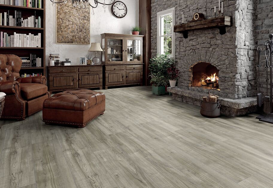 Natural. Rustic. Homely. The sight of white washed planks never fails to conjure up images of timber framed houses, thatched barns and waterside quays. Montmelo Oak Silver with its matte sheen of lava grey plays elegantly with this chain of associations and its serene and calming effect on mind, body and soul. The convincing appearance of weathered oak with its subtle rays, authentic cracks and rugged knots turns this quality flooring into a vibrant piece of nature – right under your very feet. You can give your own home the look and feel of a country cottage. This easy care, fire resistant flooring made from natural and renewable materials makes it possible down to the last detail. Extra wide planks with discreet signs of wear and a 45° groove make it almost impossible to tell the difference between this finish and the real thing. Regardless of your own personal style preference, Montmelo Oak Silver adds more than a touch of homely authenticity to your room. This hard wearing laminate flooring with the optical and physical qualities of real wood provides a visual and tactile enhancement to the modern interior. From the ground up – from the floor up!
